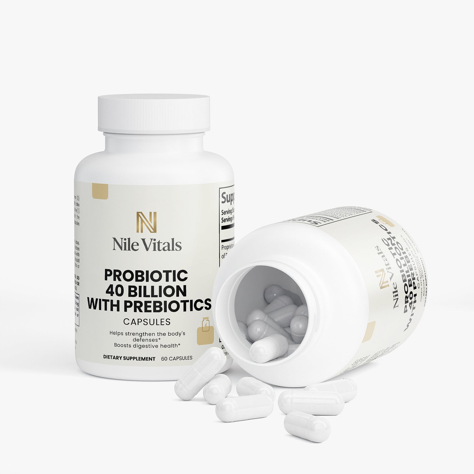 Probiotic 40 Billion with Prebiotics is a blend of four probiotic strains: Lactobacillus Acidophilus, Bifidobacterium Lactis, Lactobacillus Plantarum, and Lactobacillus Paracasei.